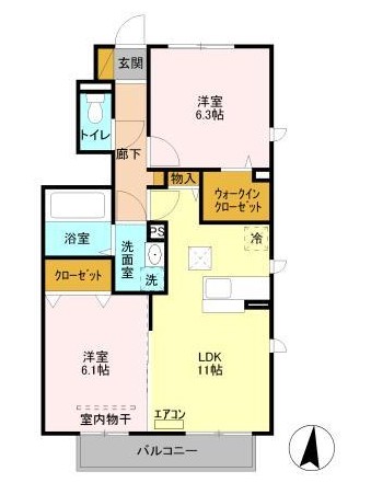 | 専有面積 | 61.66m²(18.65坪) | 間取り | 2LDK |