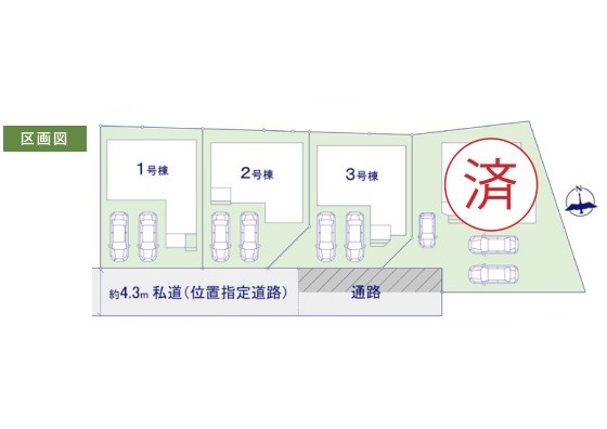 | 土地権利 | 所有権 | 道路 | 南側幅員約4.3m私道(私道持分有:231㎡×32分の1) |