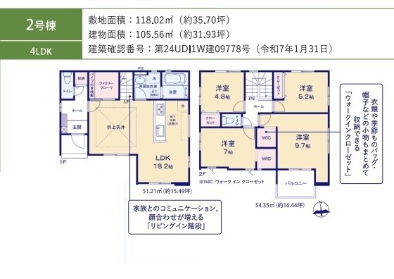 | 建物面積 | 105.56m²(31.93坪) | 間取り | 4LDK |