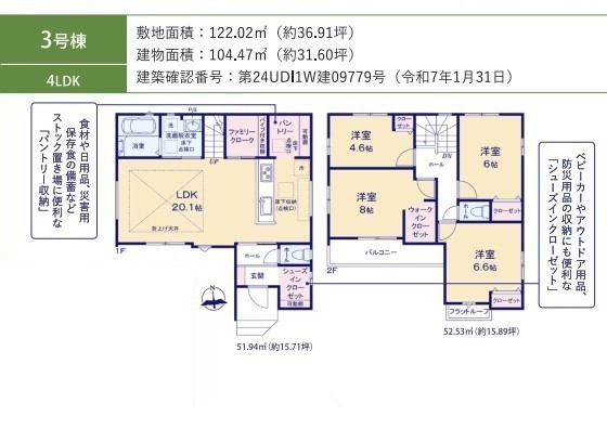| 建物面積 | 104.47m²(31.60坪) | 間取り | 4LDK |