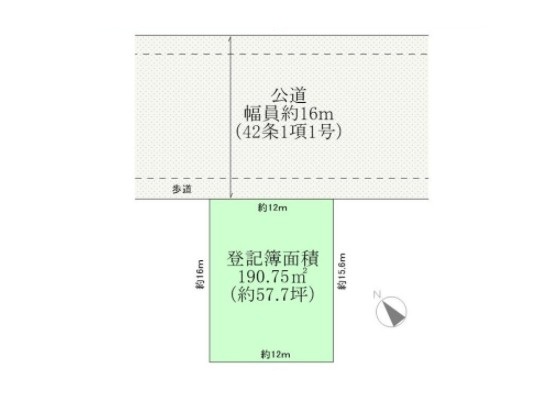 土地権利所有権道路北側幅員16m公道に間口12m接面