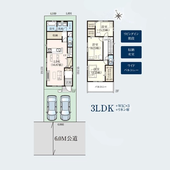 | 建物面積 | 99.36m²(30.06坪) | 間取り | 3LDK+WIC×3+リネン庫 |