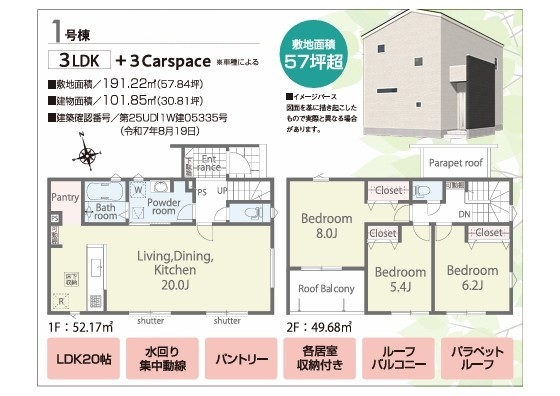 | 建物面積 | 101.85m²(30.81坪) | 間取り | 3LDK |