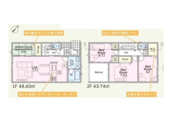 | 備考 | その他法令上の制限:法22条区域、宅地造成工事規制区域、道路斜線制限、北側斜線制限、日影規制、絶対高さ制限(10m) ----------------------------------------------------------------------------------------- <1号棟> 114.50㎡(34.63坪)102.06㎡(30.87坪)4LDK 3,088万円 ----------------------------------------------------------------------------------------- <2号棟> 116.64㎡(35.28坪)92.34㎡(27.93坪)4LDK 2,888万円 ※土地面積に路地状部分約27㎡を含む ※建物面積に別途ルーフバルコニー約7.29㎡有り ※敷地北東側は幅員約3mの法外通路に接しています ----------------------------------------------------------------------------------------- 敷地内に電柱及び支線が入る場合があります。 TV・アンテナ・シャッター・面格子・網戸・カーテンレール・照明等は付きません。 | ||