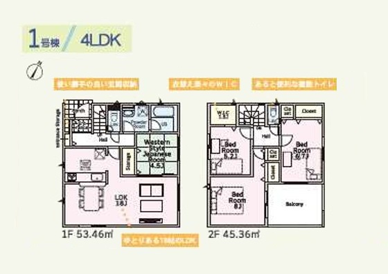 | 備考 | その他法令上の制限:道路斜線制限、北側斜線制限、日影規制、絶対高さ制限(10m) ----------------------------------------------------------------------------------------- <1号棟> 127.45㎡(38.55坪)98.82㎡(29.89坪)4LDK 2,988万円 ----------------------------------------------------------------------------------------- <2号棟> 119.76㎡(36.22坪)96.39㎡(29.15坪)4SLDK 2,888万円 ----------------------------------------------------------------------------------------- 敷地内に電柱及び支線が入る場合があります。 TV・アンテナ・シャッター・面格子・網戸・カーテンレール・照明等は付きません。 | ||