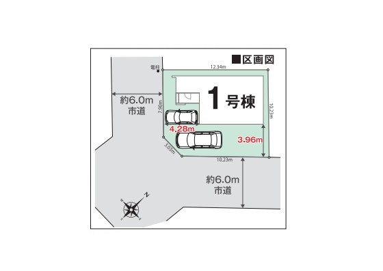 | 土地権利 | 所有権 | 道路 | 南東側幅員約6.0m公道に間口約10.2m接面 南西側幅員約6.0m公道に間口約7.9m接面 |