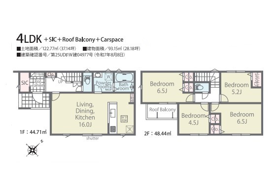 | 建物面積 | 93.15m²(28.18坪) | 間取り | 4LDK |