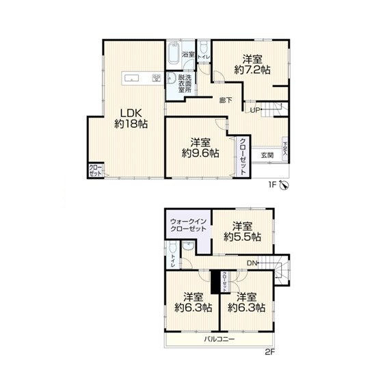 各階面積:1階90.67㎡ / 2階48.02㎡