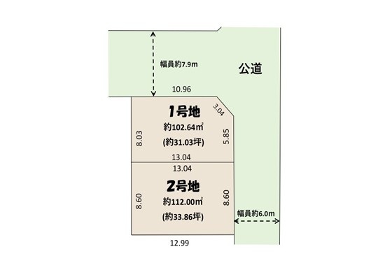 備考 | <1号地> 約102.64㎡(約31.03坪) <2号地> 約112.00㎡(約33.86坪) ----------------------------------------------------------------------------------------- 造成完了予定:2025年12月上旬 ※契約制限あり。未達で地階を有さない階数が3階建以下の住宅建築計画または更地利用の方へ向けた土地販売です。 | ||