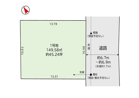 土地権利所有権道路南東側幅員6.7m公道