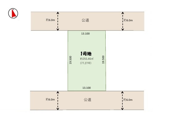<1号地> 北側幅員約6.0m公道/南側幅員約6.0m公道