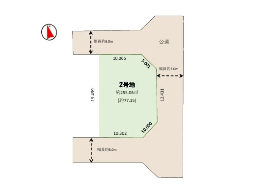 <2号地> 約225.06㎡(77.15坪)2,150万(上下水道引込、ブロック・整地あり)