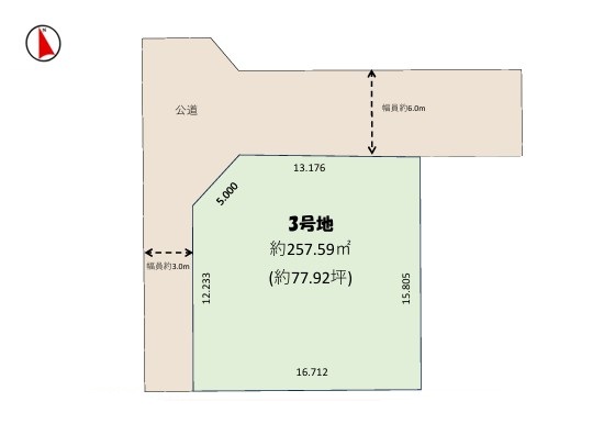 <3号地> 北側幅員約6.0m公道/西側幅員約3.0m公道