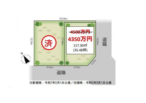 ●建築条件付土地:土地の売買契約締結後3ヶ月以内に、売主と建築工事請負契約を結ぶことを販売条件と致します。この期間内に建物を建築しないことが確定した時、あるいは建物の工事請負契約が締結されなかった場合は、土地売買契約は白紙解除となり、受領した金銭は買主に無利息にて返金致します。