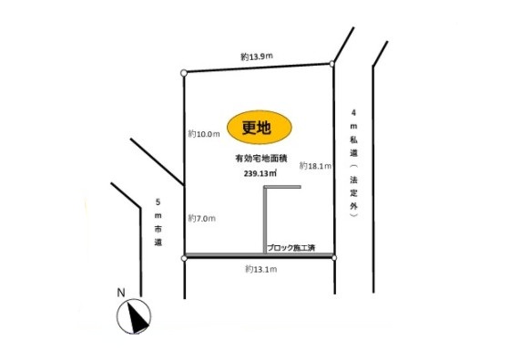 東側幅員約4.0m43条ただし書道路に約18.0m接面