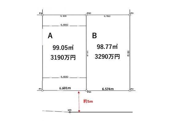 土地権利所有権道路南側幅員5.0m公道に間口6.5m接面