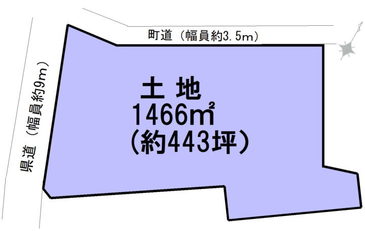 土地権利所有権道路西側県道(幅員約9m)に間口約30m接道
