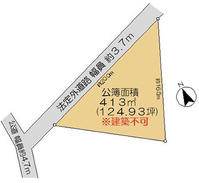 備考※建築基準法上の道路に接道していない為建築不可となります。