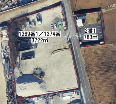 | 備 考 | 【2番1】783㎡(236.85坪) 【1369番1/1374番】3722㎡(1125.90坪) ※保証会社(初回:100%)(更新:10,000円~/年) ※現況引渡し ※残置物:ユニットハウス/井戸/仮設トイレ ※産廃・リサイクル業不可 ※建築不可 | ||