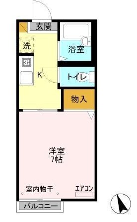 専有面積21.18m²(6.41坪)間取り1K