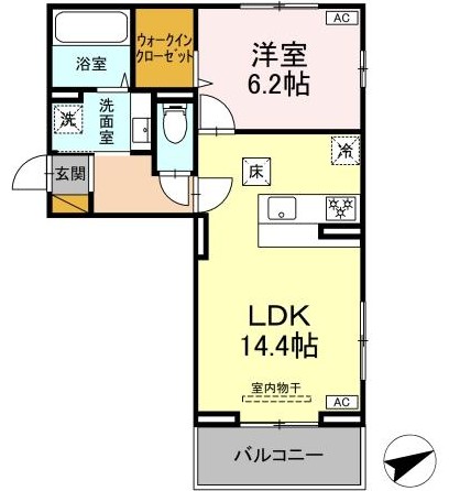 | 専有面積 | 48.34m²(14.62坪) | 間取り | 1LDK |